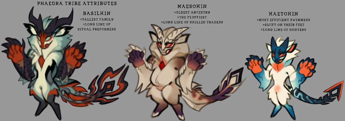 Distant relatives to the Arkhan, thriving close to their territory, Phaedra remain devoted to the native land. Phaedra prefer to stay separate from the Arkhan nation, developing distinct tribes to flourish every generation!
